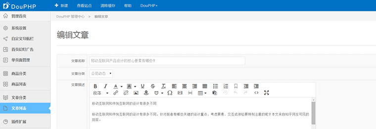 - 登錄網站后臺點擊“DouPHP+”在線安裝“文章模塊”