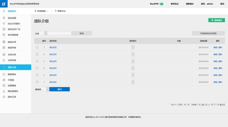 - 登錄網站后臺點擊“DouPHP+”在線安裝“團隊介紹模塊”