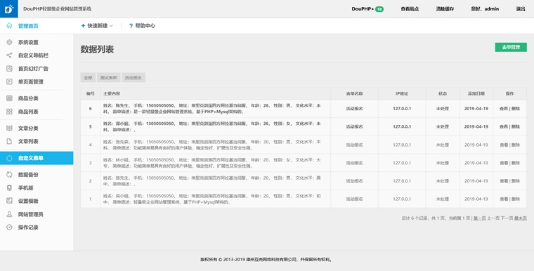 數據列表中查看具體某一條數據,可以對該條數據進行標記,可以標記為“已處理”,這樣利于用戶提交表單后,管理員可以看到哪些是自己處理過的請求,哪些是沒有處理過的。