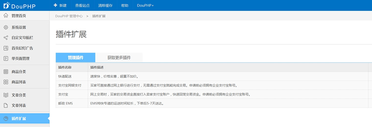 - 登錄網站后臺點擊“DouPHP+”在線安裝“插件擴展(支付與登錄)”