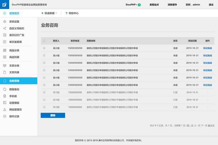 - 登錄網站后臺點擊“DouPHP+”在線安裝“業務咨詢模塊”
