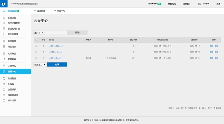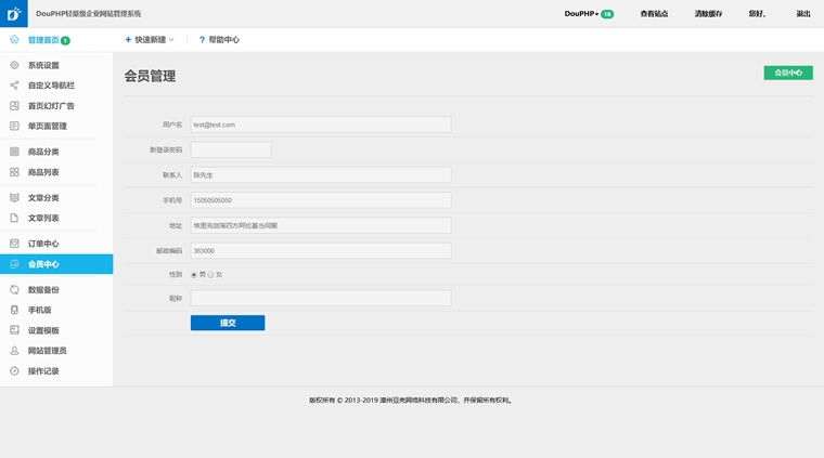 - 登錄網站后臺點擊“DouPHP+”在線安裝“會員功能”