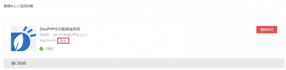 審核通過后再返回到網站應用,找到你申請網站應用,點擊查看就可以看到APPID和APPSECRET(要先生成)