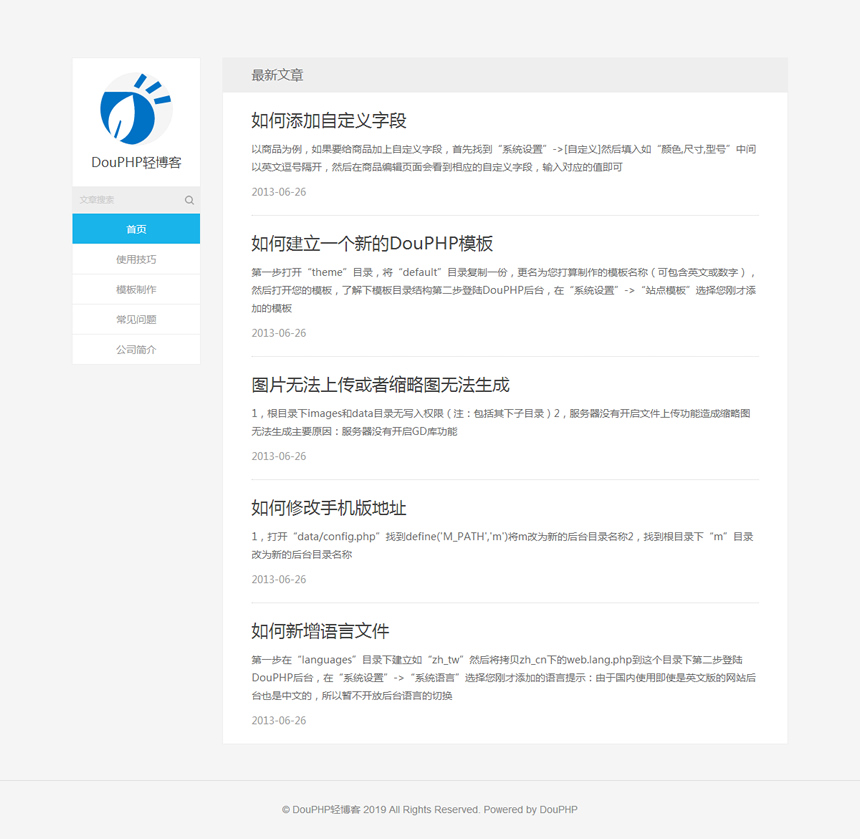 基于DouPHP開發的個人blog博客系統